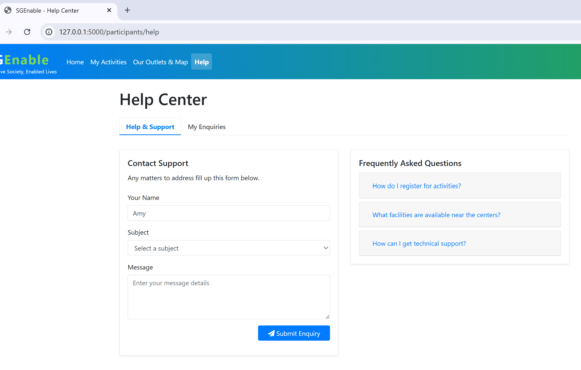 Public portal – browse activities, submit enquiries, and view information without logging in.