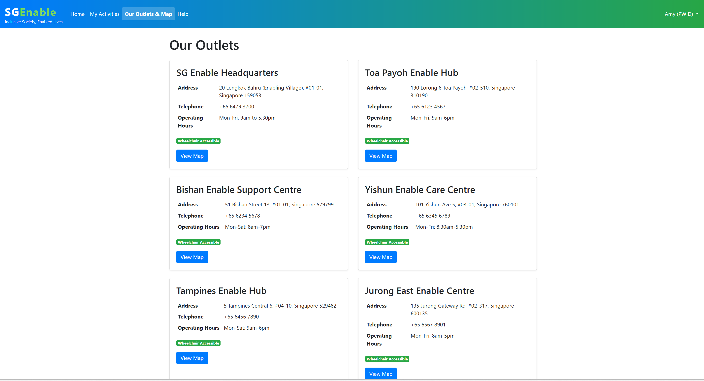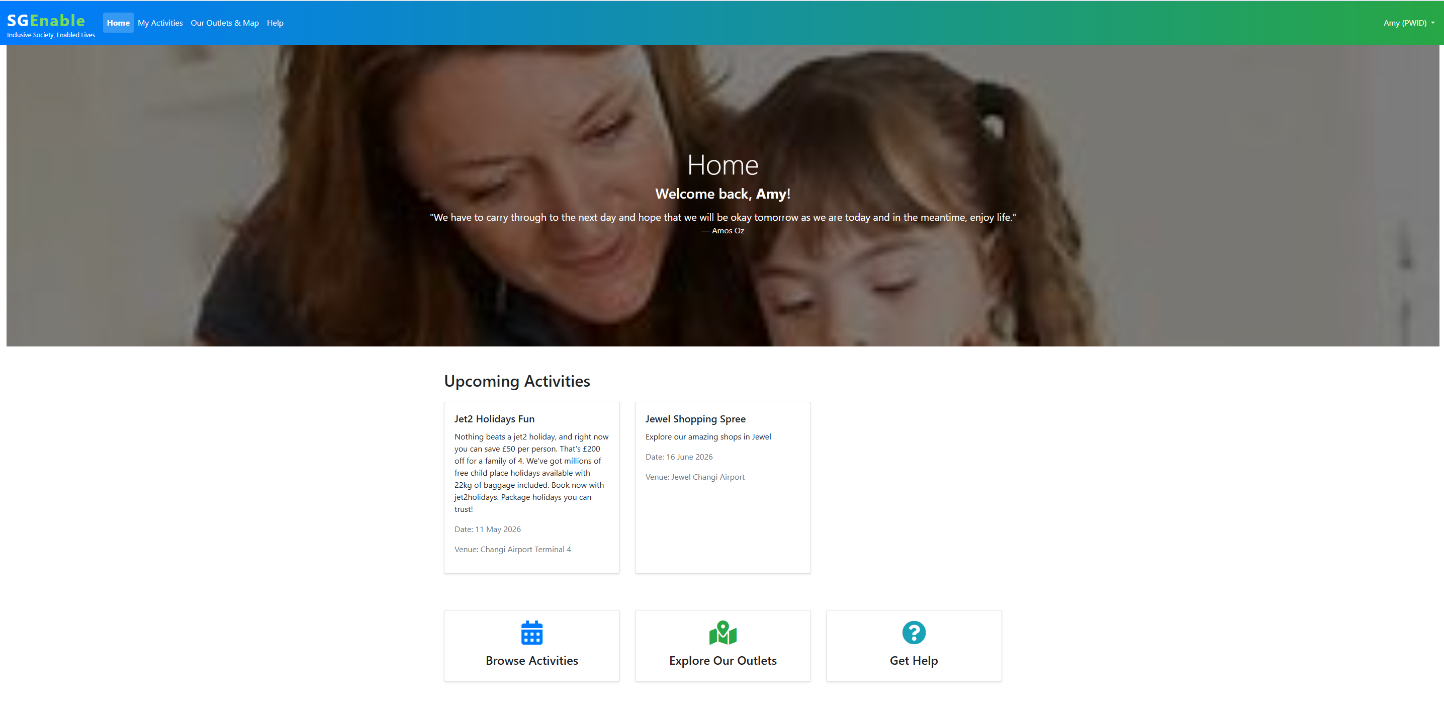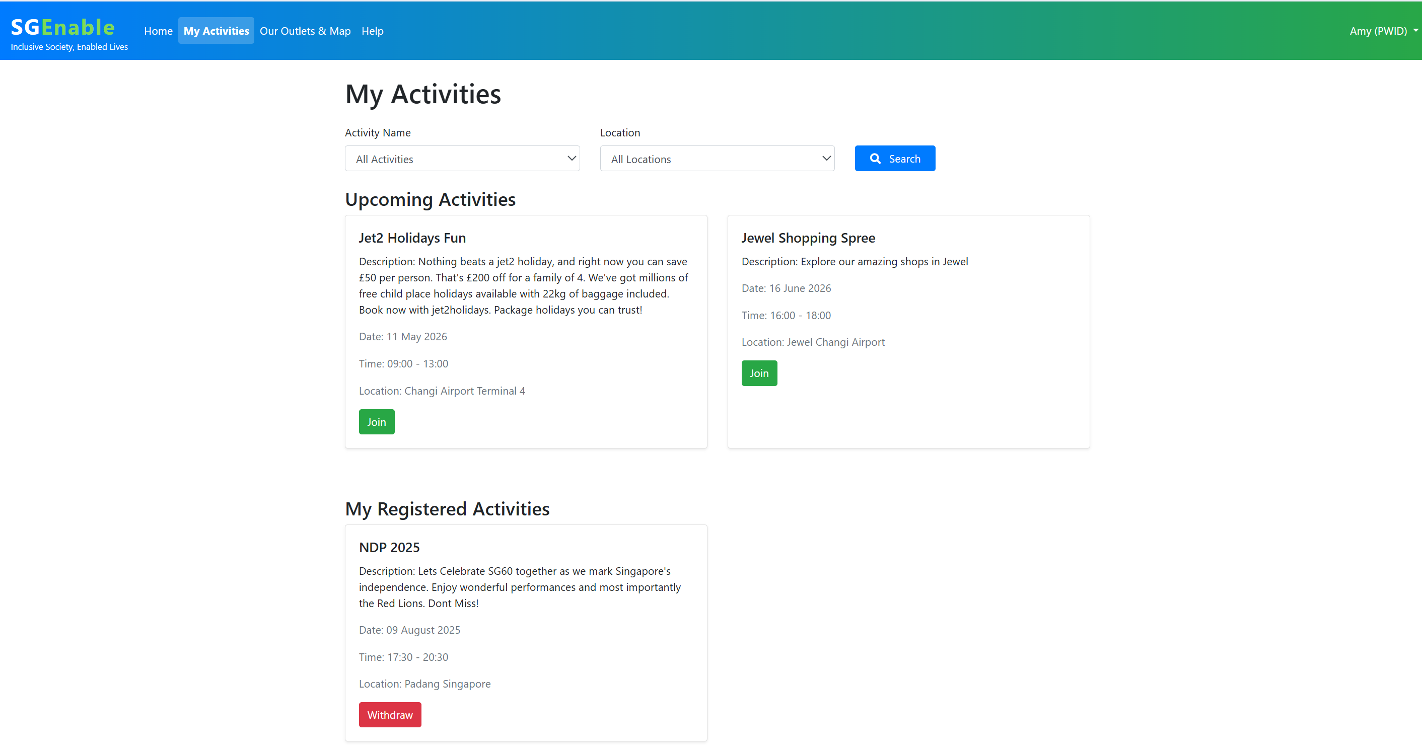 PWIDs and caregivers – to easily discover activities, submit enquiries, and manage profiles.