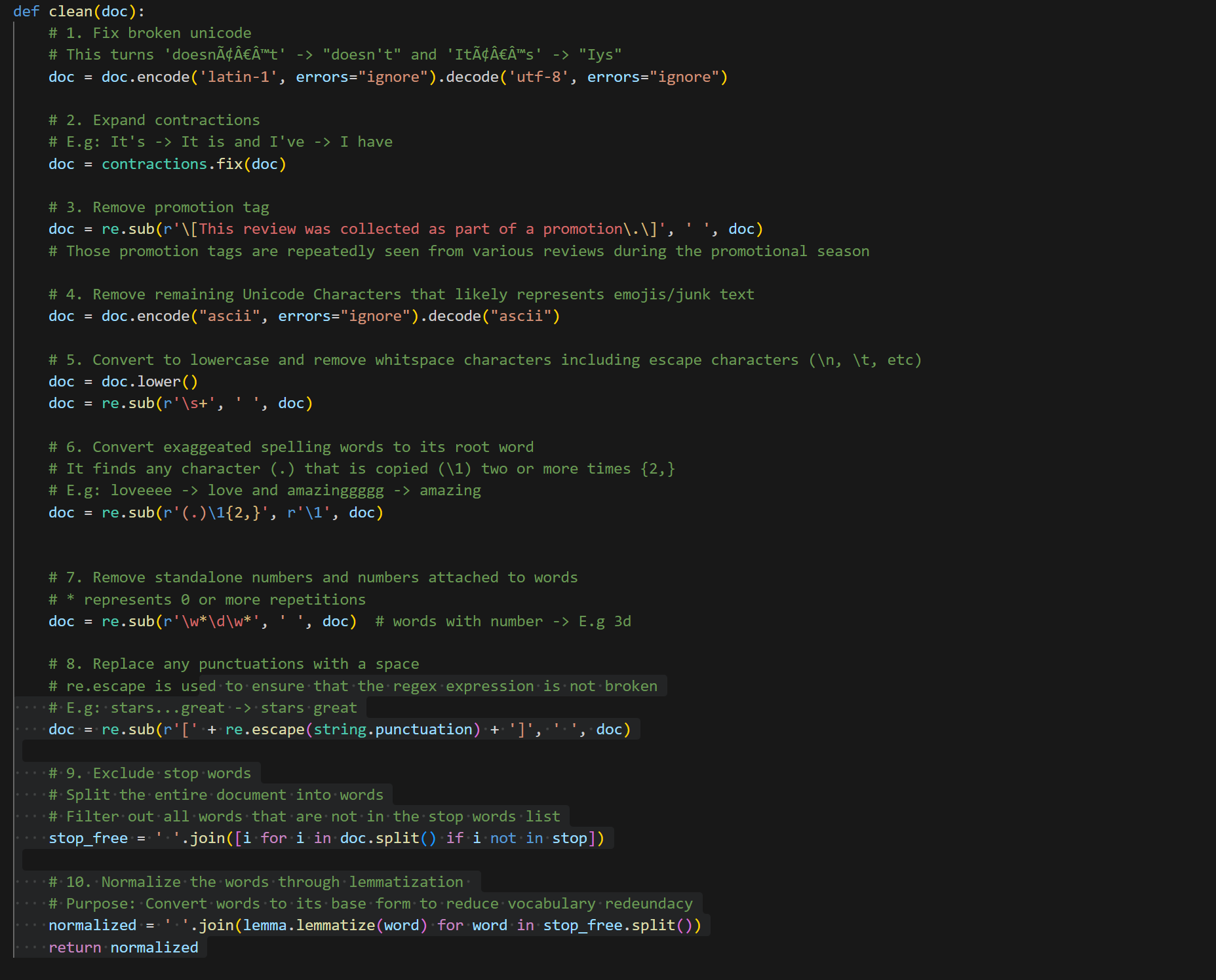 Implemented a rigorous 10-step preprocessing pipeline using NLTK and Regex, featuring contraction expansion, noise removal (emojis/URLs), and lemmatization.