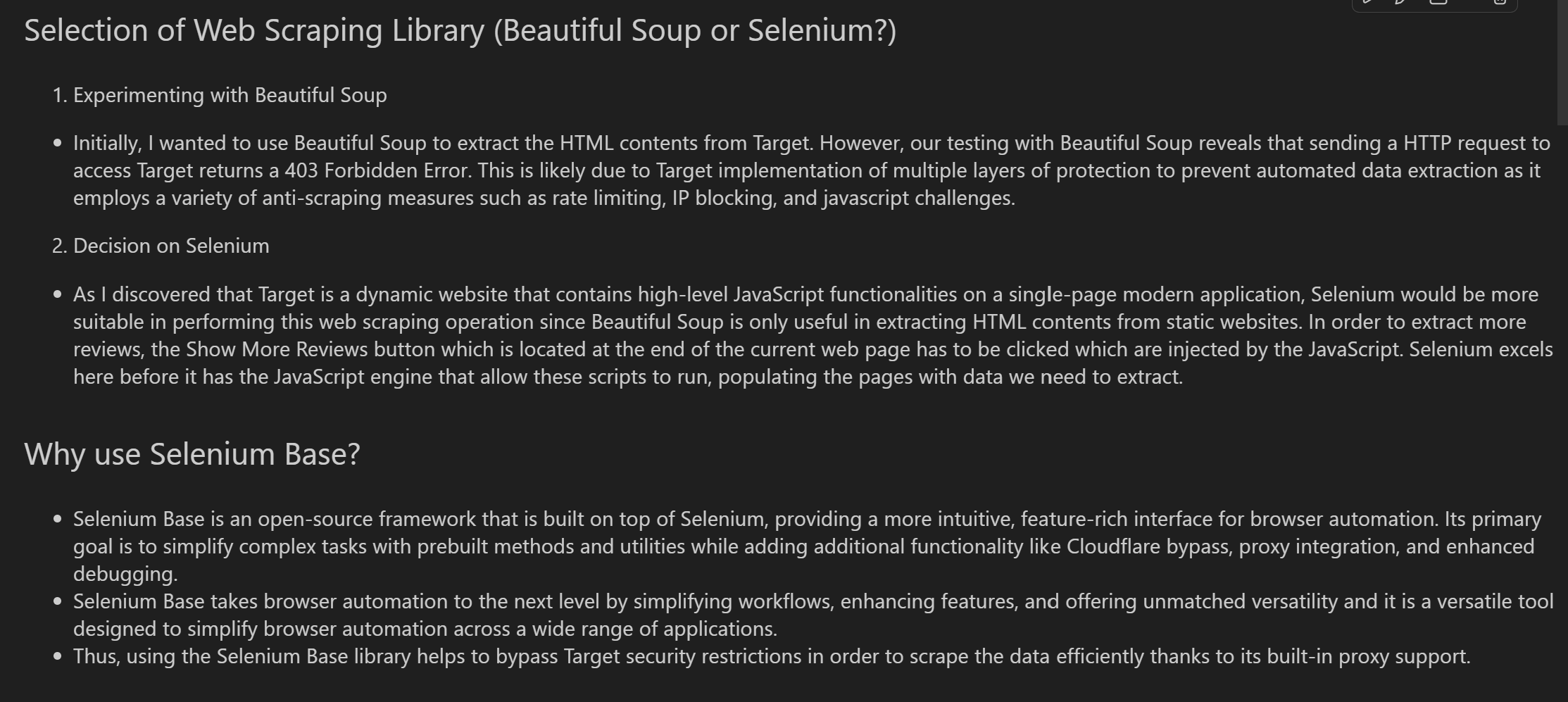 Designed and executed Python scripts using SeleniumBase to simulate authentic user behavior, effectively bypassing 403 Forbidden errors on dynamic platforms like Target.com.