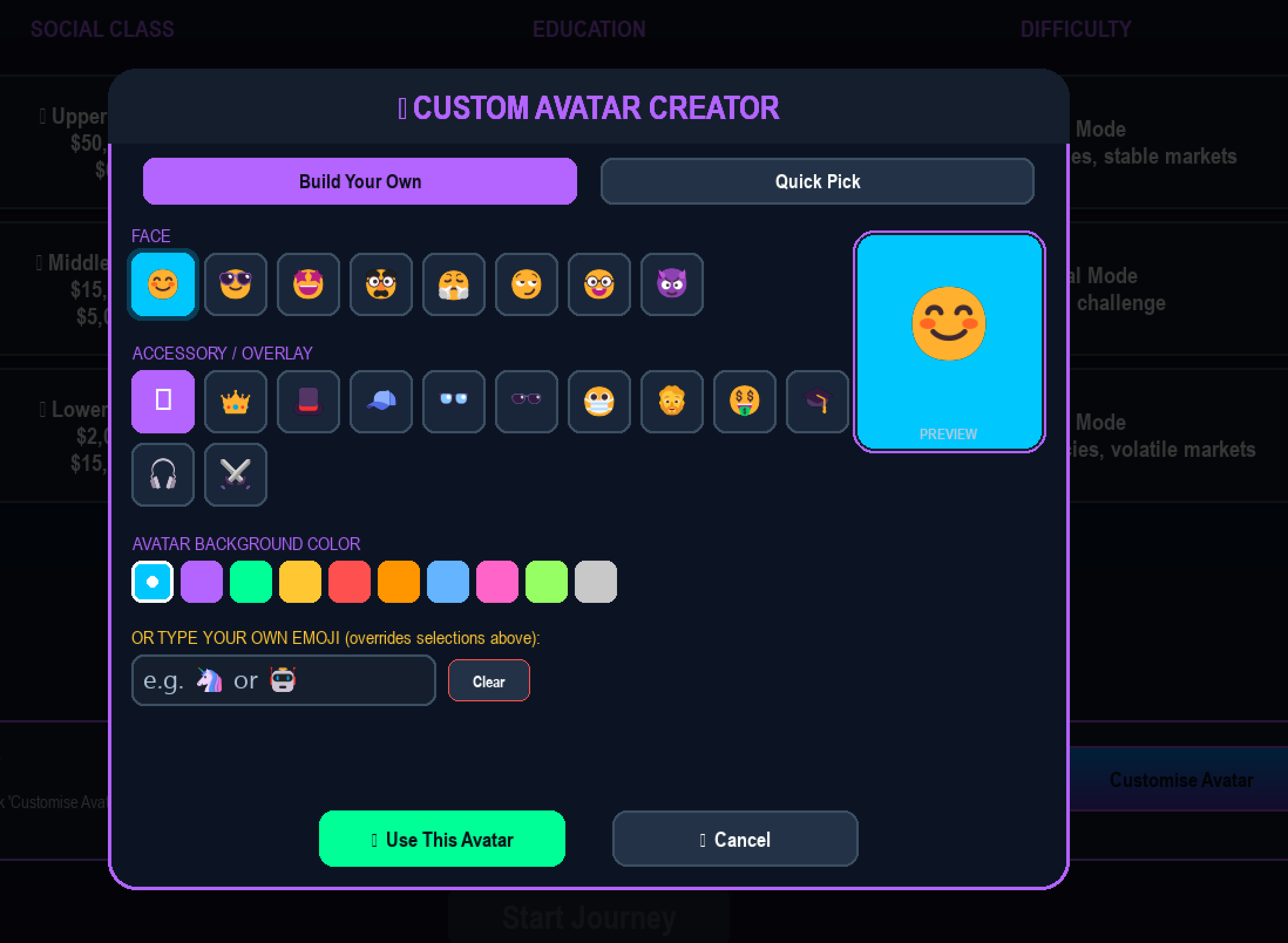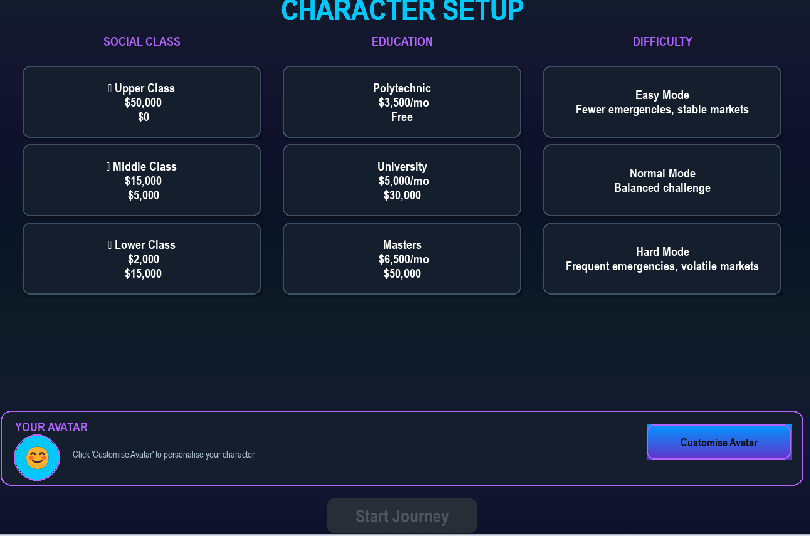 Financial literacy is often taught through static resources that lack engagement. There was a need for an interactive, data‑driven tool that simulates real‑life financial decisions and provides personalised feedback to help users learn by doing.